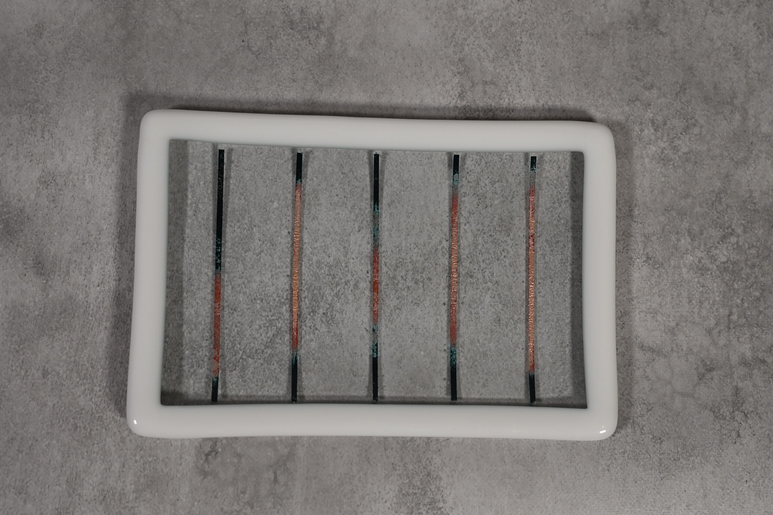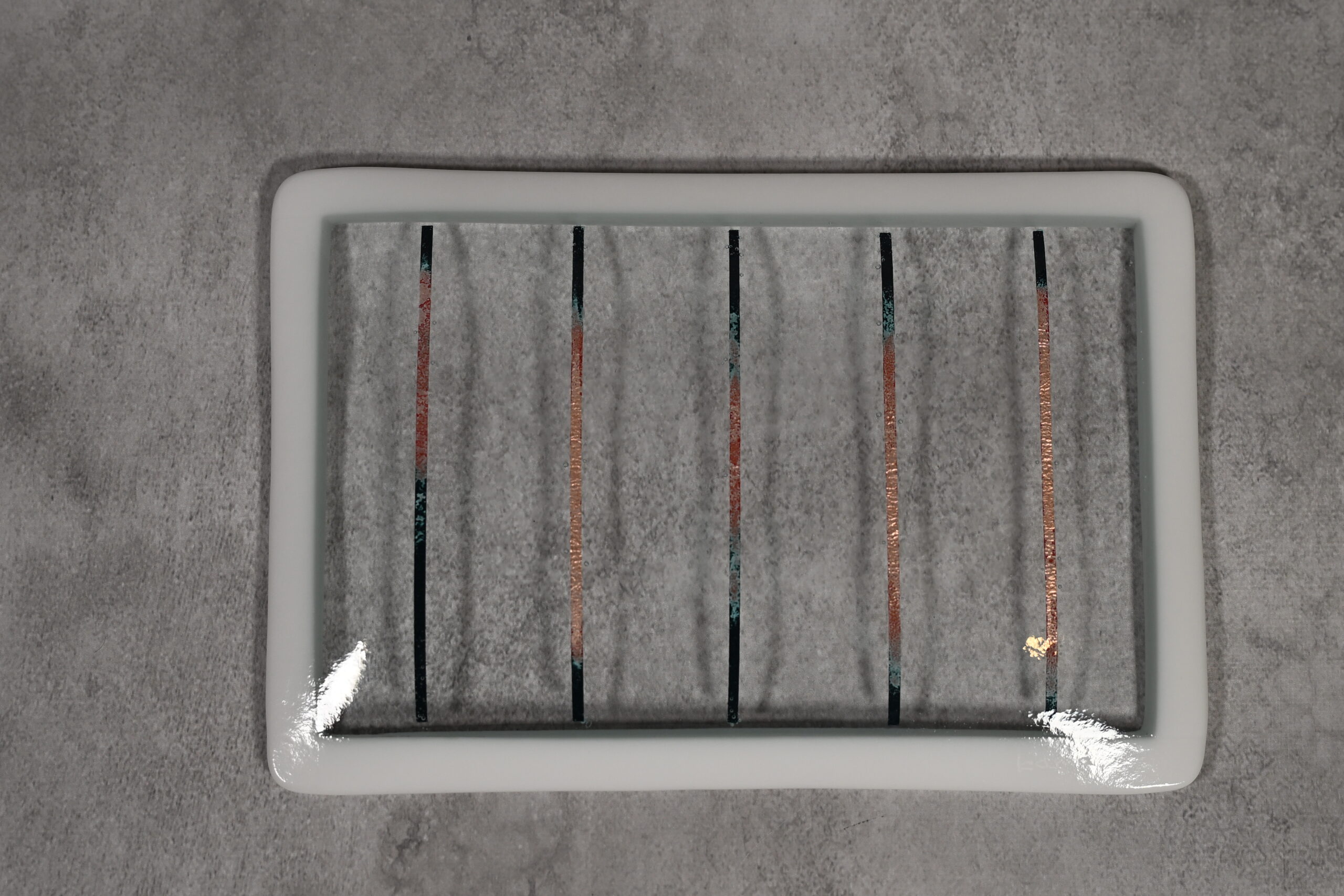 真鍮を含んだブロンズ色のラインが魅力的です。ガラスならではの冷たいお料理、お刺身やお漬物の盛り合わせなど相性が良いです。