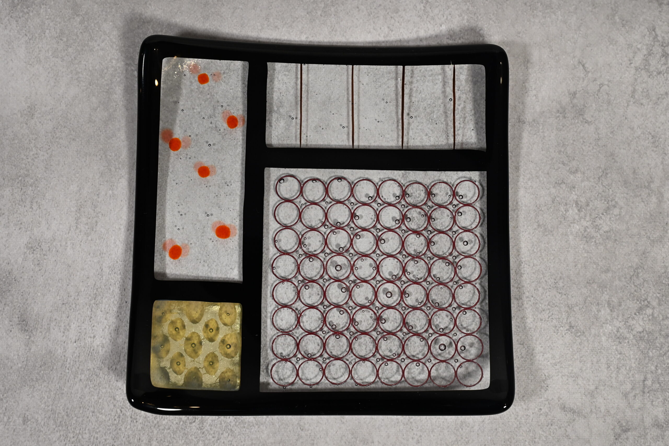 多種多様の柄と技法が組み込まれた遊び心満点なお皿です。柄を使いながらの盛り付けは難易度が高いですが楽しめます!